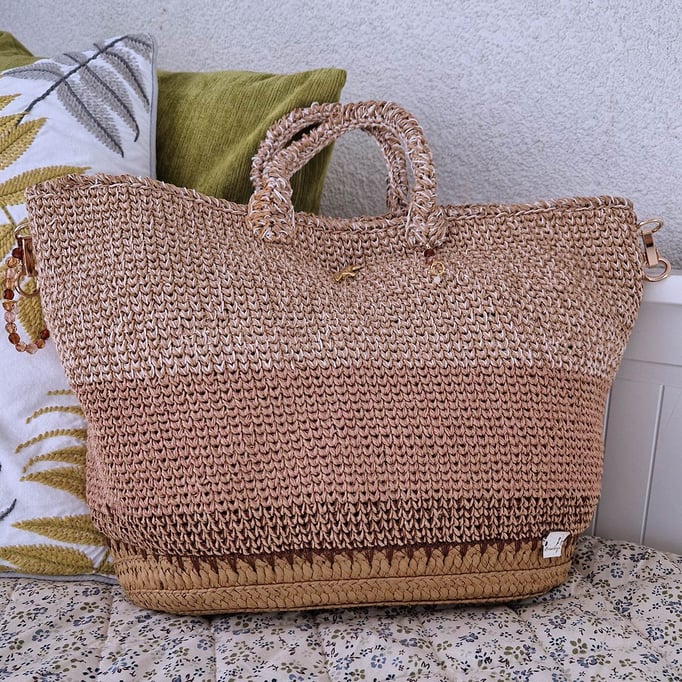 Der Shopper Serena ist eine einzigartige Kombination aus Papiergarn und einem Baumwollfaden. Dieser verhindert, dass sich die Tasche auch durch ein schweres Gewicht nach unten verzieht. So bleibt die Form immer stabil. Hochwertige Seitenschnallen in Lightgold ermöglichen einen schnellen Wechsel des gewünschten Tragegurtes. Die Tasche eignet sich aber auch gut für ein Tragen am Handgelenk.