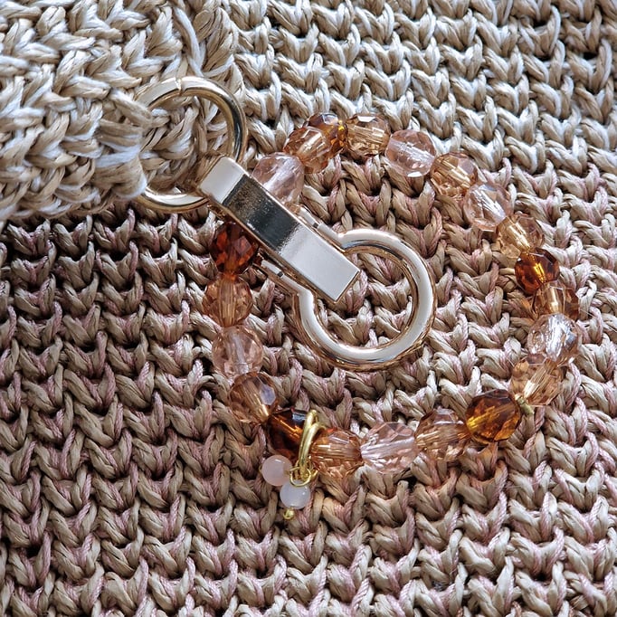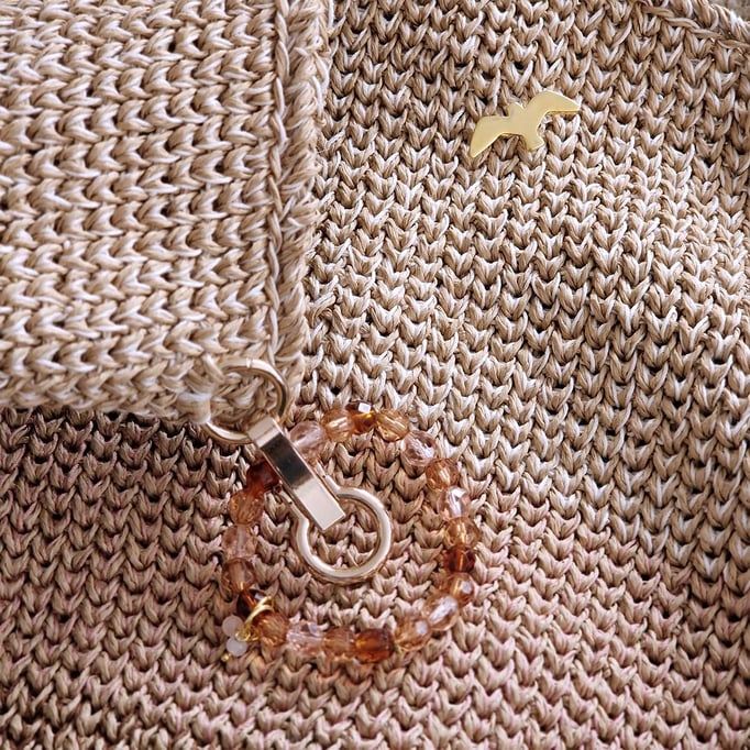 Die Käuferin wird ausserdem mit einem schönen Armbändeli in dreierlei Farben geschmückt. Das Pendant dazu ist auch an der Tasche angebracht.